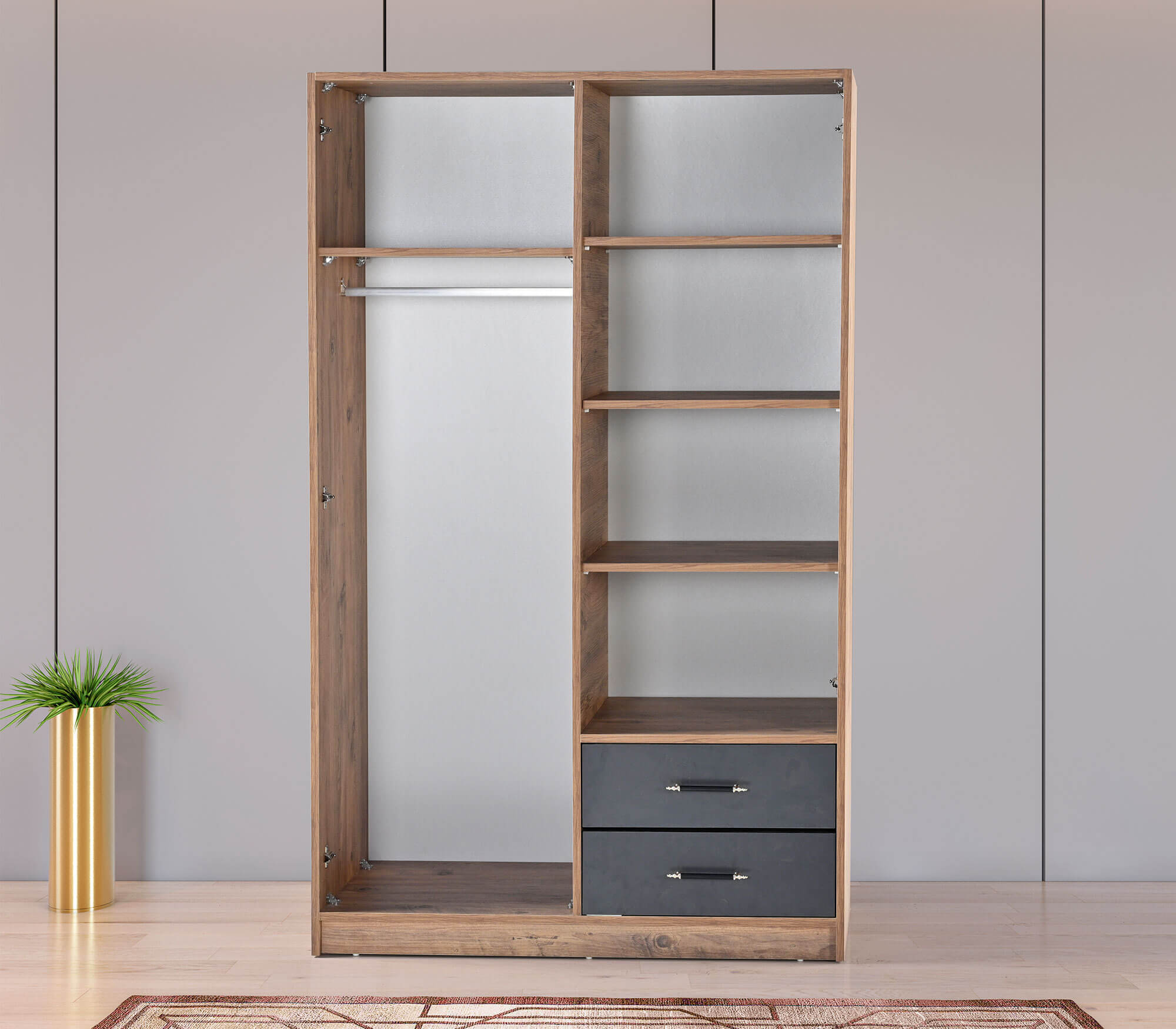 3 Kapılı Antrasit Ceviz Dolap